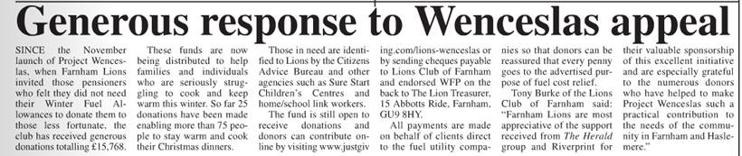 Project Wenceslas steps out again in Haslemere |