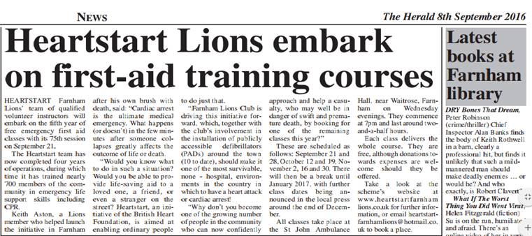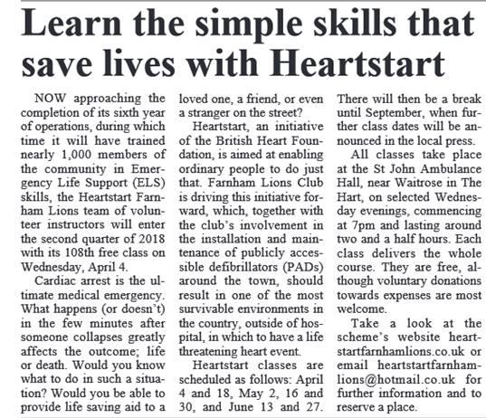Farnham Lions help to save lives |