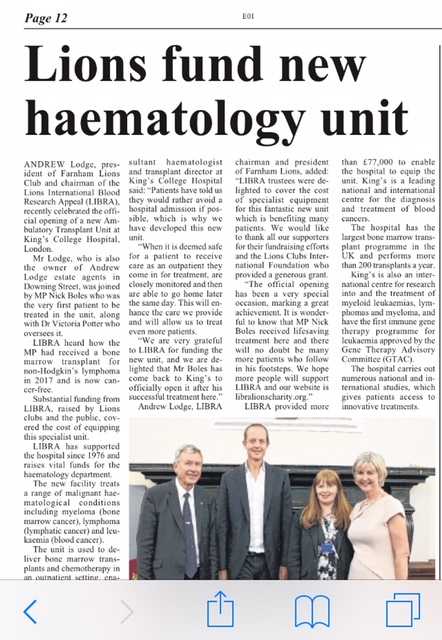 Lions fund new Haematology Unit |